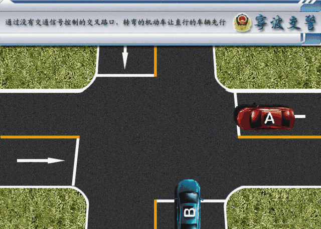 【事故情形】:在沒有交通信號控制的交叉路口,A車轉彎時與其他方向進入路口直行的B車發生事故。